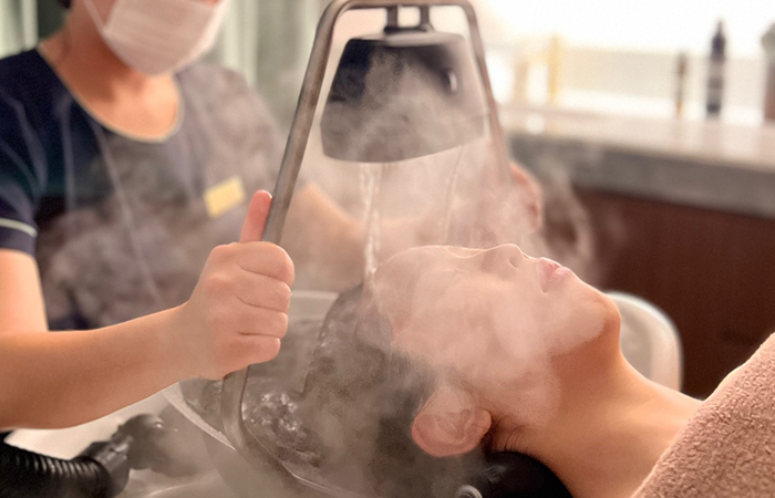 Scalp aging is a major cause of facial sagging and loss of elasticity. IMBELLIS' head spa enhances scalp circulation through fascia release, improving oily scalp, alleviating hair loss, increasing moisture and shine in the hair, and relieving stress-induced headaches.